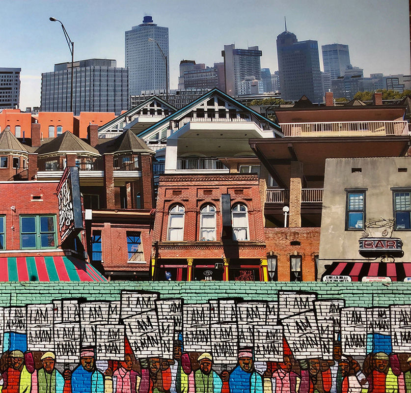 Memphis TN, I am a Man, oil and photo transfer on canvas, 40" x 42"