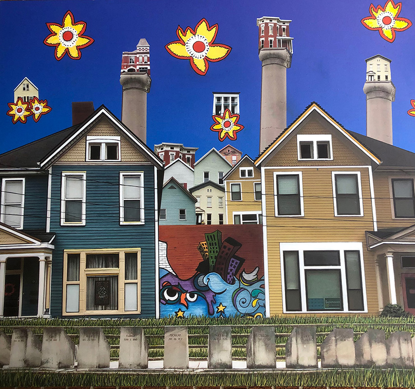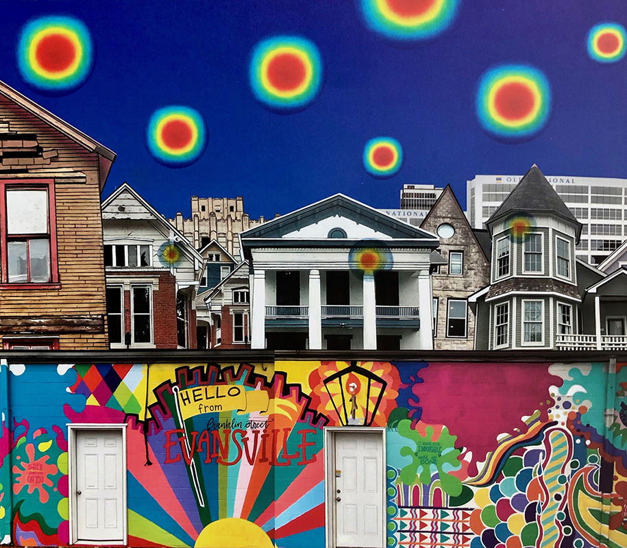 Evansville IN, oil and photo transfer on canvas, 40" x 44"