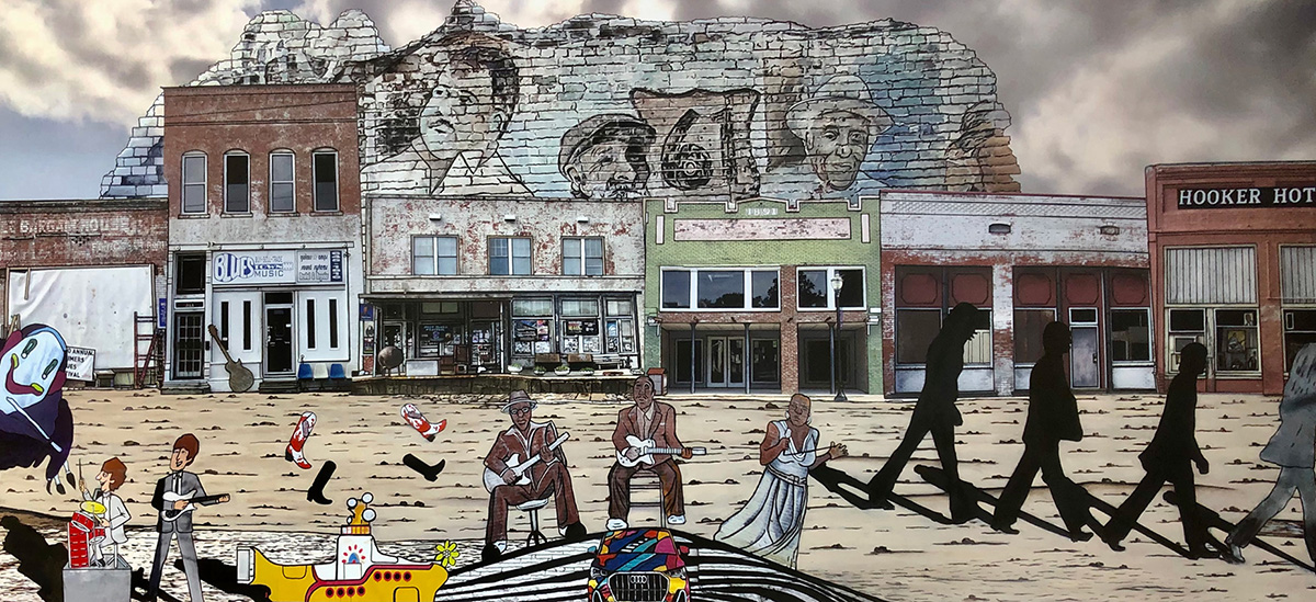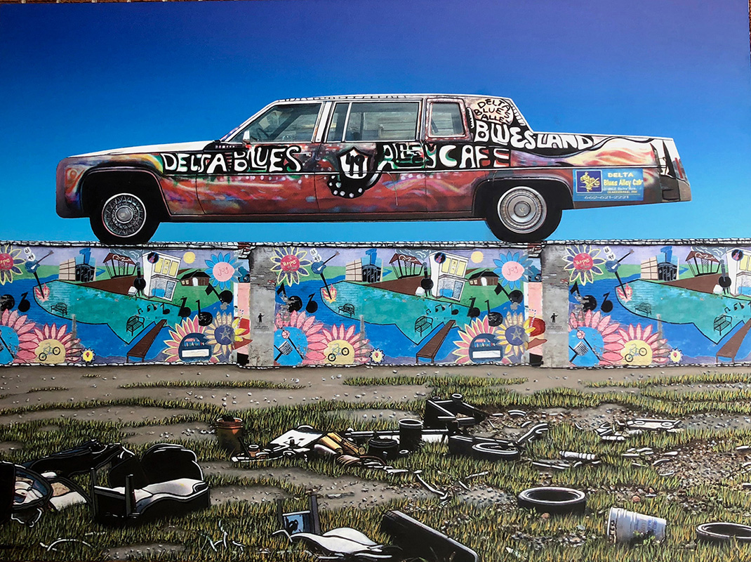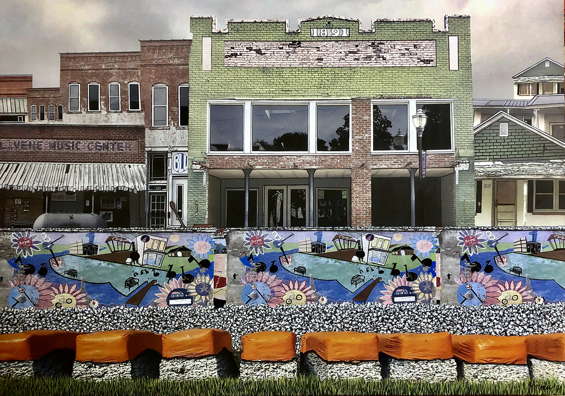Clarksdale MS; 2021, oil & photo transfer on canvas, 40" x 56"